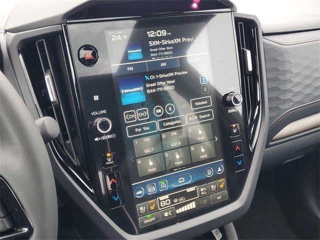 - Radio: Subaru 11.6" Multimedia Navigation System -inc: valet mode, integrated center information display, AM/FM stereo HD Radio, multi-touch gesture high resolution display screen, voice activated controls, voice activated navigation, Bluetooth® audio streaming and hands-free phone connectivity w/SMS text messaging (refer to Subaru.com for cellphone compatibility), TomTom navigation software w/what3words, iPod control capability, smartphone integration: Android Auto and Apple CarPlay w/full screen view and wireless connection, SiriusXM satellite radio w/360L (free 4-month trial subscription included), USB and Over The Air (OTA) audio system update, USB and Map Over The Air (MOTA) TomTom navigation system update (3 years free map updates), steering wheel controls, harman/Kardon speaker system w/11 speakers and 576 watt equivalent maximum output amplifier, 3.5mm auxiliary input jack and roof mounted audio, satellite antenna and SiriusXM Travel Link (4 months free trial included/subscription required after)