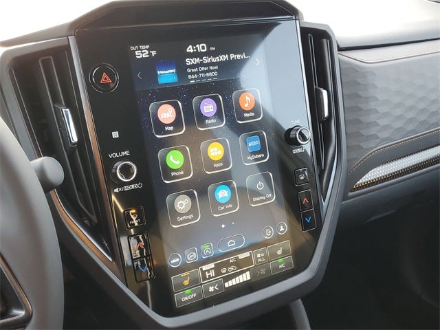 - Radio: Subaru 11.6" Multimedia Plus System -inc: valet mode, integrated center information display, AM/FM stereo HD Radio, multi-touch gesture high resolution display screen, voice activated controls, Bluetooth® audio streaming and hands-free phone connectivity w/SMS text messaging (refer to Subaru.com for cellphone compatibility), iPod control capability, smartphone integration: Android Auto and Apple CarPlay w/full screen view and wireless connection, SiriusXM satellite radio w/360L (free 4-month trial subscription included), USB and Over The Air (OTA) audio system update, steering wheel controls, 6 speakers, 3.5mm auxiliary input jack and roof mounted audio and satellite antenna