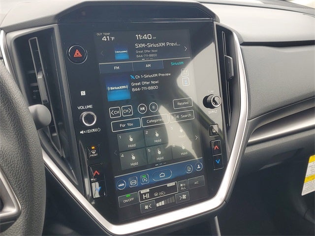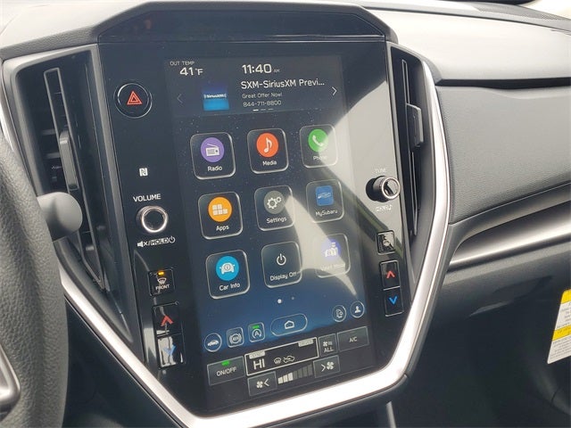 - Radio: Subaru 11.6" Multimedia Plus System -inc: valet mode, AM/FM stereo, HD Radio, multi-touch gesture high resolution display screen, voice activated controls, Bluetooth® audio streaming and hands-free phone connectivity, Bluetooth® hands-free SMS text messaging connectivity, iPod control capability, smartphone integration: wired and wireless Android Auto w/full screen view, wireless Apple CarPlay w/full screen view and wireless connection, USB and Over The Air (OTA) audio system update, audio system and Bluetooth® steering wheel control switches, 6 speakers (2 dash panel tweeter, 2 front door, 2 rear door), illuminated 3.5mm auxiliary input jack, illuminated USB A and C input charge ports, roof mounted satellite and connected services, roof mounted black antenna, connected services operation indicator, SOS emergency assistance (red button) and ehanced roadside assistance (blue i-button)