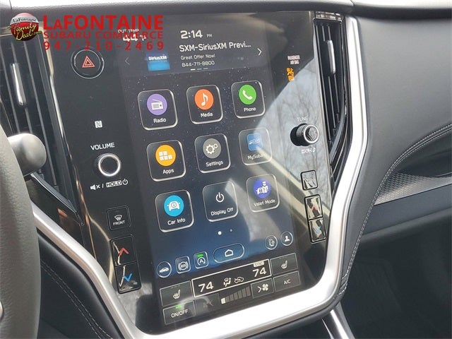 - Radio: Subaru 11.6" Multimedia Plus System -inc: AM/FM stereo, HD Radio, valet mode, multi-touch gesture high resolution display screen, voice activated controls, Bluetooth® audio streaming and hands-free phone connectivity w/SMS text messaging (refer to subaru.com for cell phone compatibility), Near Field Communication (NFC), iPod control capability, SiriusXM w/360L (4 months free trial/subscription required after), SiriusXM Travel Link (3 years free trial/subscription required after), smartphone integration w/full screen view and wireless connection for Android Auto and Apple CarPlay, USB and Over The Air (OTA) audio system update, audio/Bluetooth® steering wheel control switches, 6 speakers, 3.5mm illuminated front auxiliary input jack, illuminated front and rear USB-A and USB-C input/charge ports and roof mounted satellite and connected services