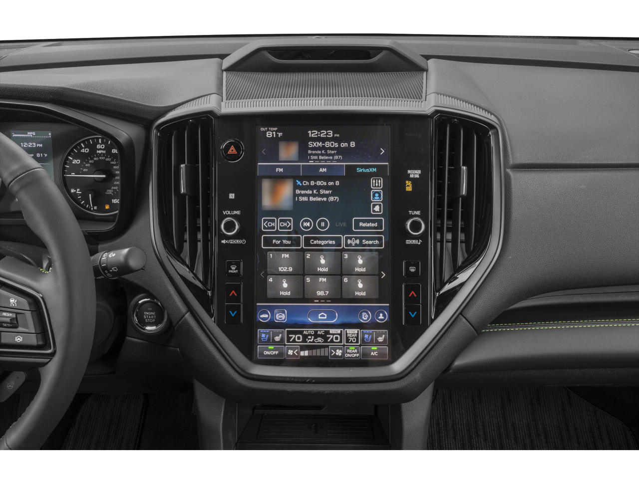 - Radio: Subaru 11.6" Multimedia System w/Navigation -inc: AM/FM stereo HD Radio, multi-touch gesture high resolution display screen, voice activated controls for radio and navigation, Bluetooth® audio streaming and hands-free phone connectivity w/SMS text messaging connectivity (refer to subaru.com for cell phone compatibility), TomTom navigation software w/what3words, iPod control capability, smartphone integration for Android Auto and Apple CarPlay w/full screen view and wireless connection, USB audio system update, audio system control switches, hands-free phone switches and voice command talk switch on steering wheel, harman/kardon quantum logic surround sound speaker system w/14 speakers, subwoofer and harman/kardon 792 watt equivalent maximum output amplifier, illuminated 3.5mm auxiliary input jack, illuminated USB A and C input/charge ports, SiriusXM w/360L (4 months free trial included/subscription required after) and SiriusXM Travel Link (4 months free trial included/subscription required after)