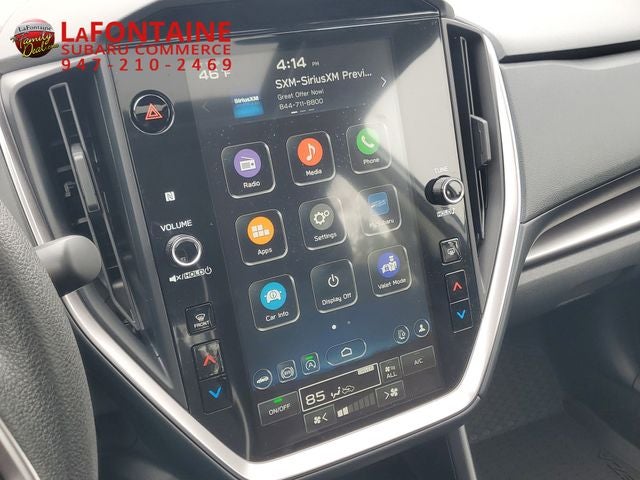 - Radio: Subaru 11.6" Multimedia Plus System -inc: valet mode, AM/FM stereo, HD Radio, multi-touch gesture high resolution display screen, voice activated controls, Bluetooth® audio streaming and hands-free phone connectivity, Bluetooth® hands-free SMS text messaging connectivity, iPod control capability, smartphone integration: wired and wireless Android Auto w/full screen view, wireless Apple CarPlay w/full screen view and wireless connection, USB and Over The Air (OTA) audio system update, audio system and Bluetooth® steering wheel control switches, 6 speakers (2 dash panel tweeter, 2 front door, 2 rear door), illuminated 3.5mm auxiliary input jack, illuminated USB A and C input charge ports, roof mounted satellite and connected services, roof mounted black antenna, connected services operation indicator, SOS emergency assistance (red button) and ehanced roadside assistance (blue i-button)